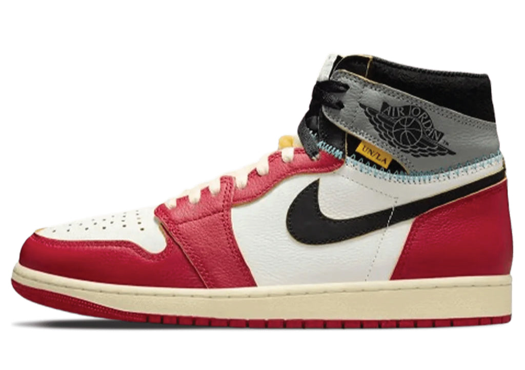 The Air Jordan 1 Retro High OG SP Union LA "Chicago Shadow" merges two iconic colorways with a vintage twist. Designed in collaboration with Union Los Angeles, it features exposed stitching, yellowed midsoles, and a mix of red, white, and grey tones. Premium leather and retro branding complete this layered, story-driven release.