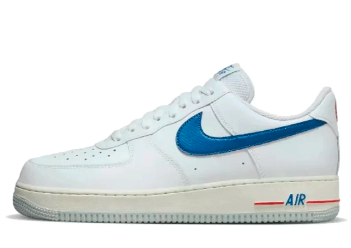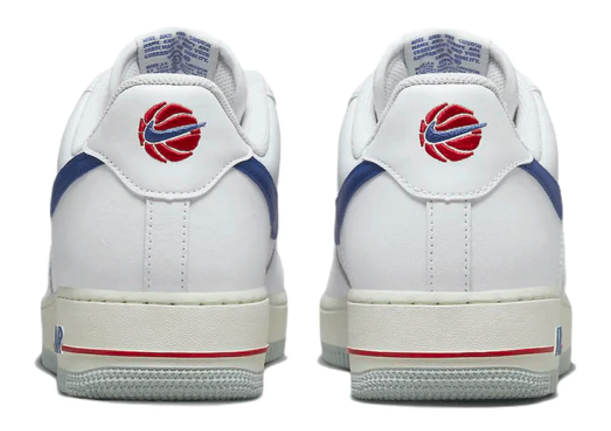 The Nike Air Force 1 Low '07 USA Basketball brings patriotic flair to a legendary silhouette. Featuring a premium white leather upper, it’s accented with bold varsity blue Swooshes and subtle hits of red, inspired by classic USA Basketball colors. Perforations on the toe box enhance breathability, while the durable rubber outsole provides traction and support. The iconic Air-cushioned midsole ensures lasting comfort, whether you’re hitting the courts or the streets. Retro “AIR” branding on the midsole adds a nostalgic touch, perfectly blending heritage basketball style with modern streetwear appeal. Crafted for fans of both the game and timeless sneakers, this pair stands out with a crisp, clean look that celebrates American basketball heritage.