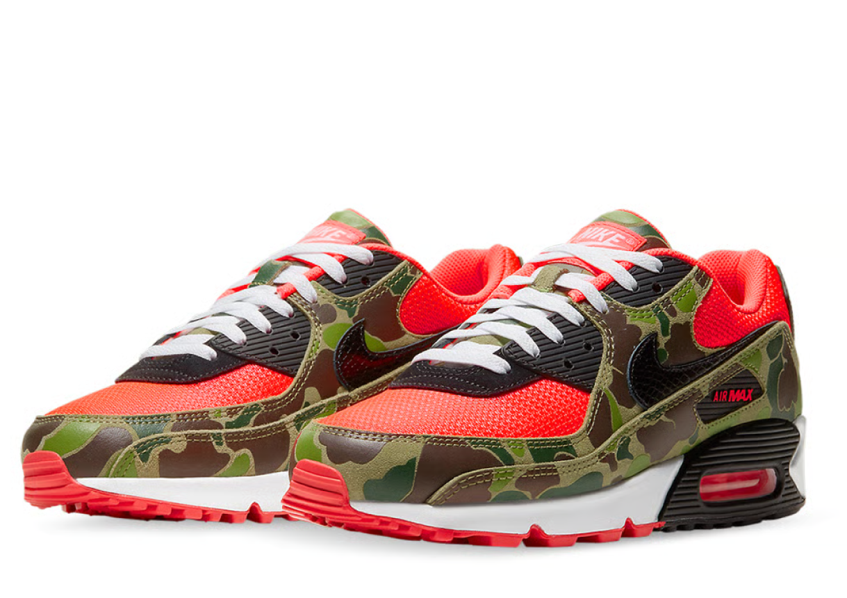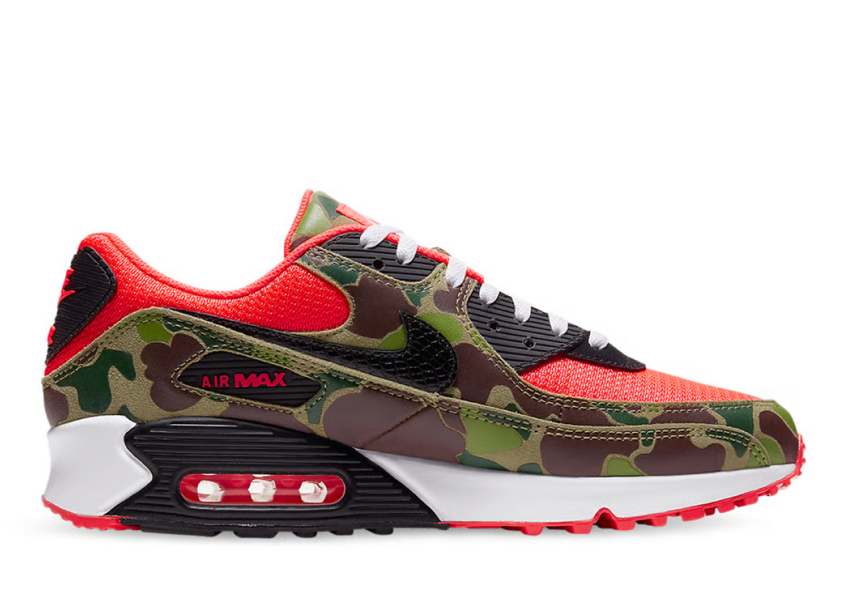 The Nike Air Max 90 SP Reverse Duck Camo redefines bold streetwear with its eye-catching camo print and iconic silhouette. Featuring a vibrant infrared base layered with reverse duck camo overlays, this sneaker delivers a perfect blend of heritage and modern flair. Built with durable mesh and leather materials, it offers superior breathability and structure. The visible Max Air unit in the heel ensures exceptional cushioning and impact absorption, while the rubber outsole provides reliable traction. Whether for everyday wear or statement styling, the Reverse Duck Camo edition stands out in any sneaker rotation, offering both performance and personality.
